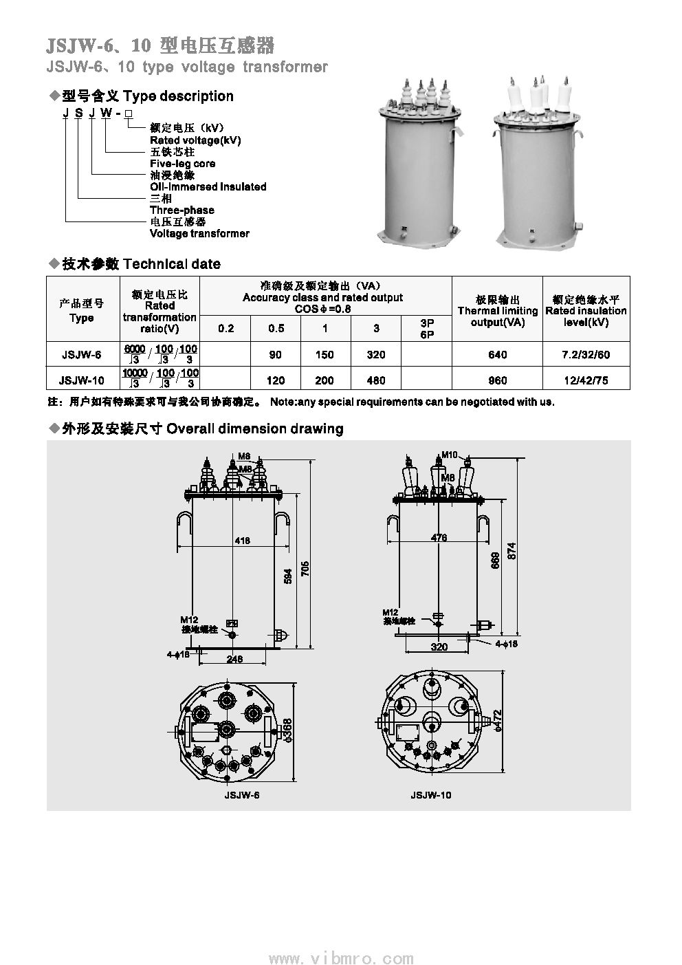 产品标题:JSJW-6电压互感器