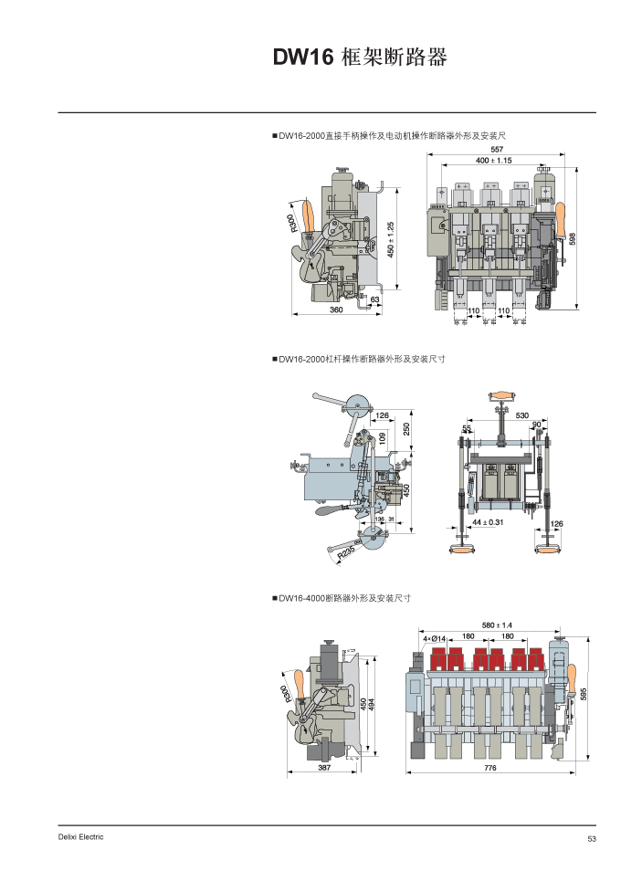 CDW1-2000 800A 3P固定式AC380V 长延时0.附,CDW1系列万能式断路器,DELIXI德力西