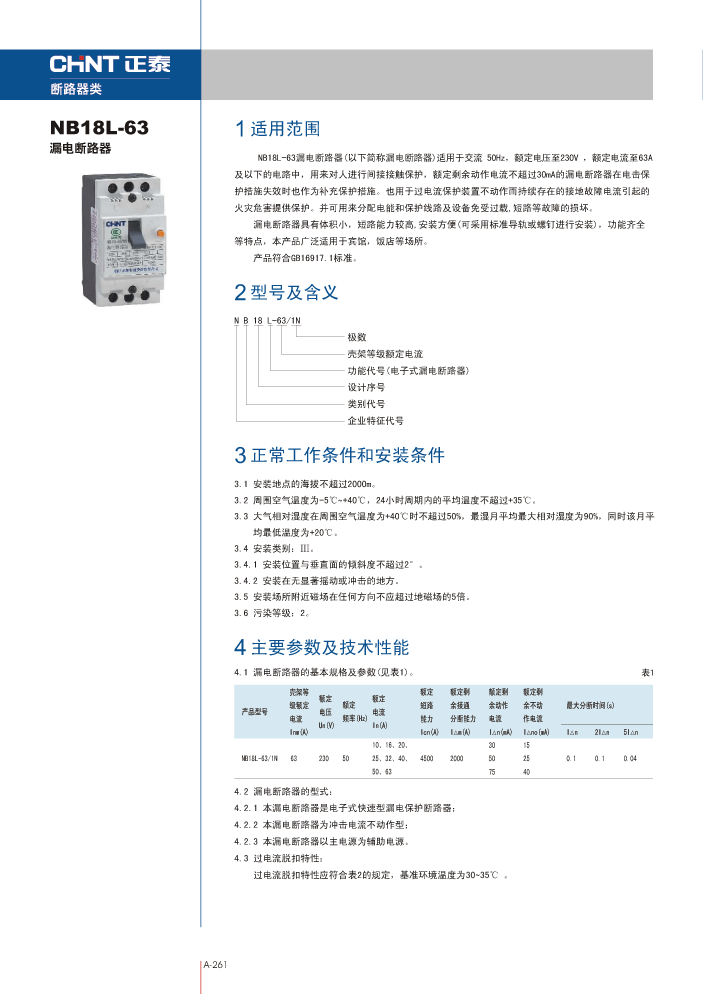 适用于交流 50Hz,额定电压至230V ,额定电流至63A及以下的电路中,用来对人进行间接接触保护,额定剩余动作电流不超过30mA的漏电断路器在电击保护措施失效时也作为补充保护措施。也用于过电流保护装置不动作而持续存在的接地故障电流引起的火灾危害提供保护。并可用来分配电能和保护线路及设备免受过载,短路等故障的损坏。