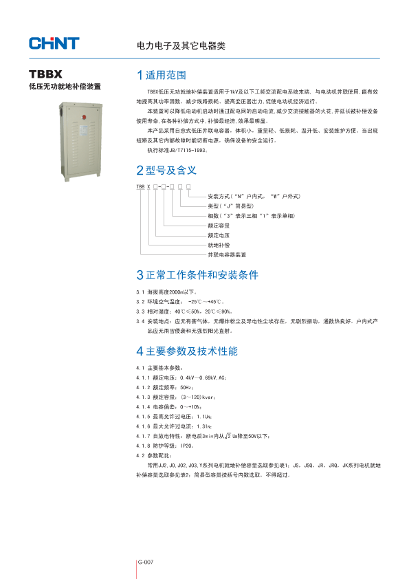 适用于1kV及以下工频交流配电系统末端, 与电动机并联使用,能有效地提高其功率因数、减少线路损耗、提高变压器出力,促使电动机经济运行。本装置可以降低电动机启动时通过配电网的启动电流,减少交流接触器的火花,并延长被补偿设备使用寿命,在各种补偿方式中,补偿最经济,效果最明显。本产品采用自愈式低压并联电容器,体积小,重量轻、低损耗、温升低、安装维护方便。当出现短路及其它内部故障时能切断电源,确保设备的安全运行。 执行标准JB/T7115-1993。 | |