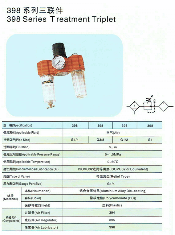 产品标题:398G1/2系列三联件,气源处理件,HNDA